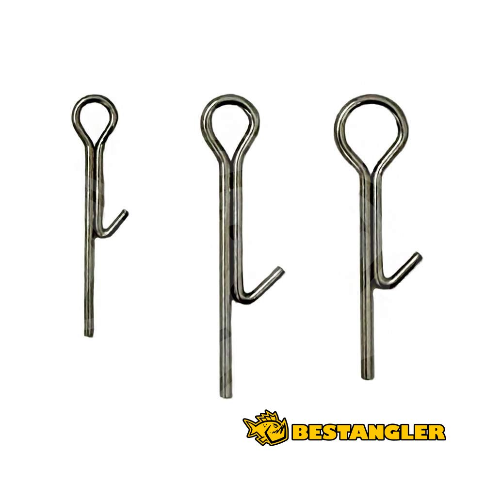 Stainless steel fixing spikes BestAngler Stinger Spikes are a highly practical accessory for mounting a treble hook or a stinger system directly into the body of a soft plastic lure. This stainless steel spike holds reliably and firmly in the lure material, even during aggressive retrieves or violent strikes. The hook thus always remains in its optimal position exactly where it should be. The spikes are supplied in packs of 10 pieces and are available in 3 different sizes depending on the proportions of the chosen lure.