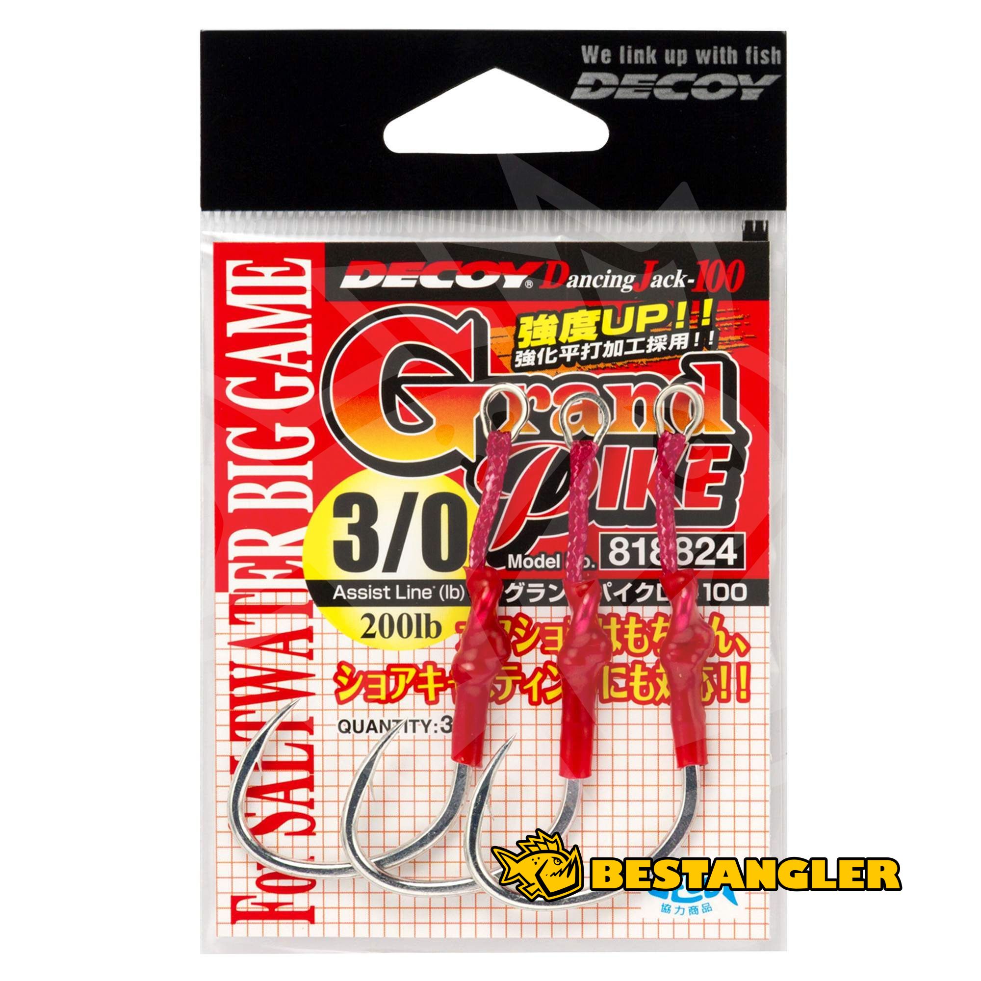 DECOY DJ-100 Grand Pike is an extremely heavy-duty single assist hook designed for power jigging setups, built for targeting large fish and use with heavier jigs. It is based on the legendary Pike concept but features the reinforced JS-3 Pike Type-R hook, offering fast hook penetration, excellent piercing power, and reliable holding strength even during aggressive retrieves or slow, forceful jigging.