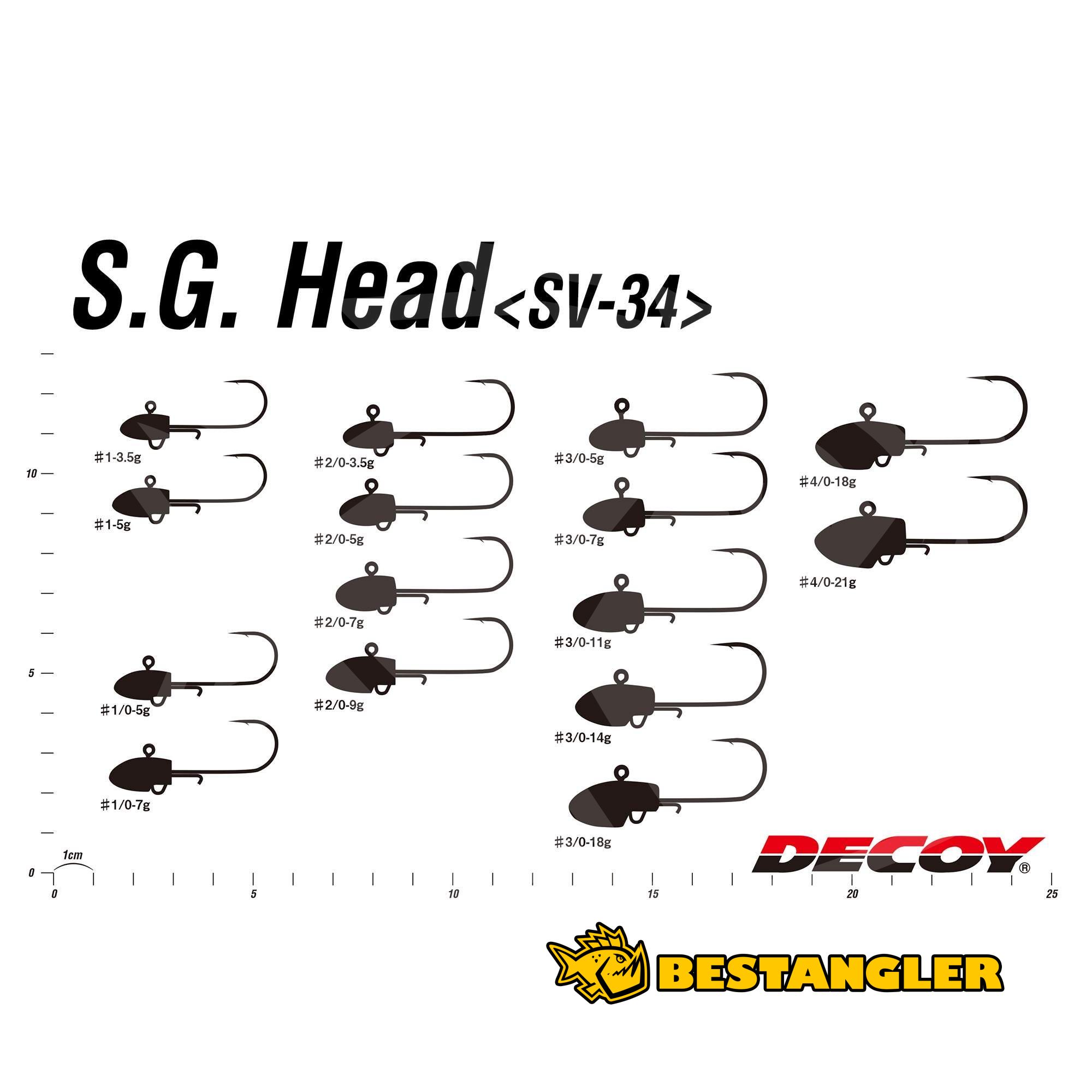 DECOY SV-34 Salt Groove S.G. Head is a dependable jig head designed for both saltwater and freshwater predators. Thanks to its balanced head shape, it sinks quickly through the water column and remains stable when resting on the bottom, making it easy to control the retrieve and perfectly present long, slender soft baits. It works exceptionally well with steady retrieves, subtle twitches, and fluttering drops — which is often when the strikes happen.