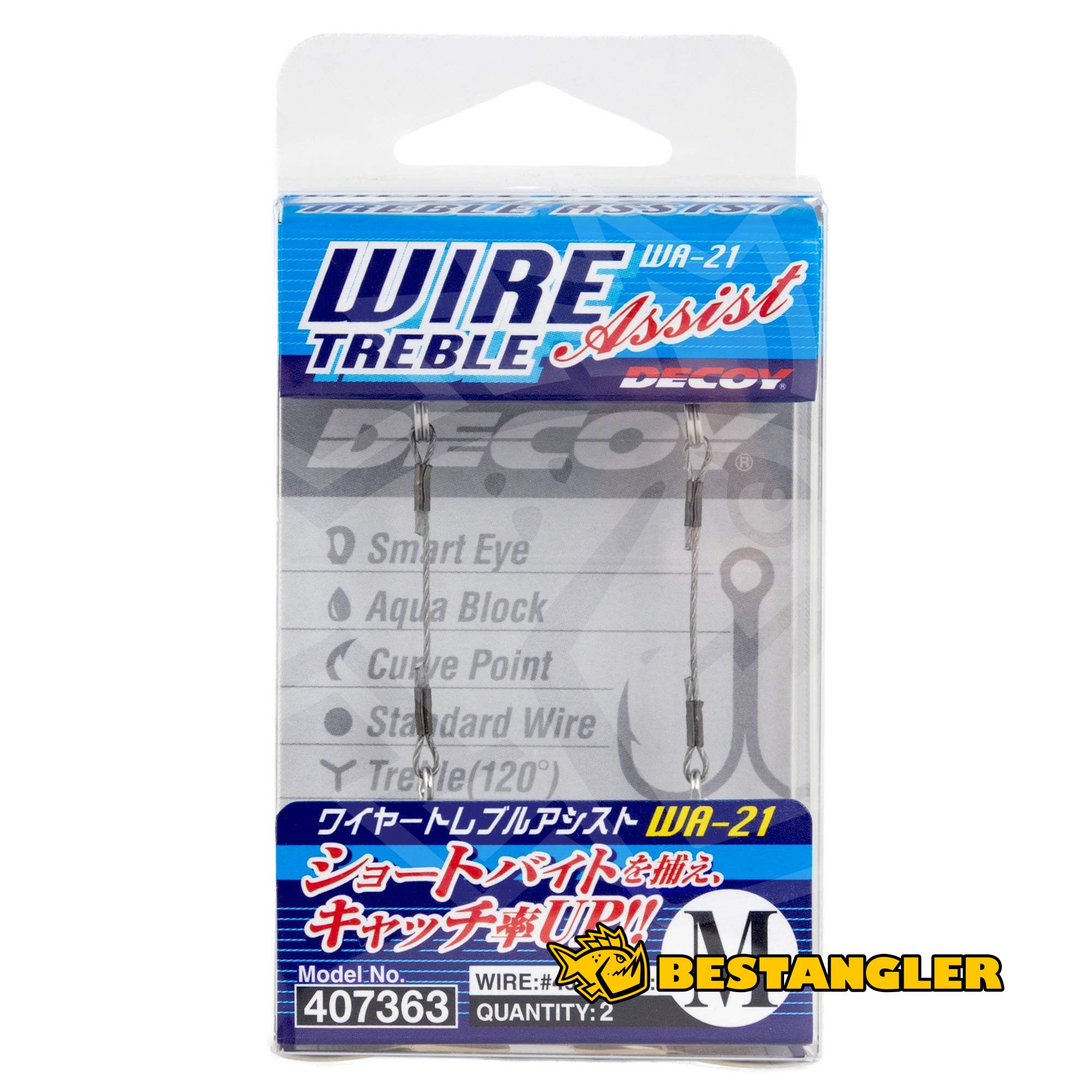 DECOY WA-21 Wire Treble Assist je asist systém s trojháčkem navržený pro zvýšení úspěšnosti záseku při lovu dravců, kteří často útočí krátce nebo opatrně. Konstrukce využívá trojháček Y-S21 připojený pomocí ohebného ocelového drátu, který umožňuje nástraze přirozený pohyb a zároveň poskytuje dodatečný bod pro zásek. Tento systém pomáhá proměnit i krátké nebo nepřesné útoky v jistý kontakt s háčkem.