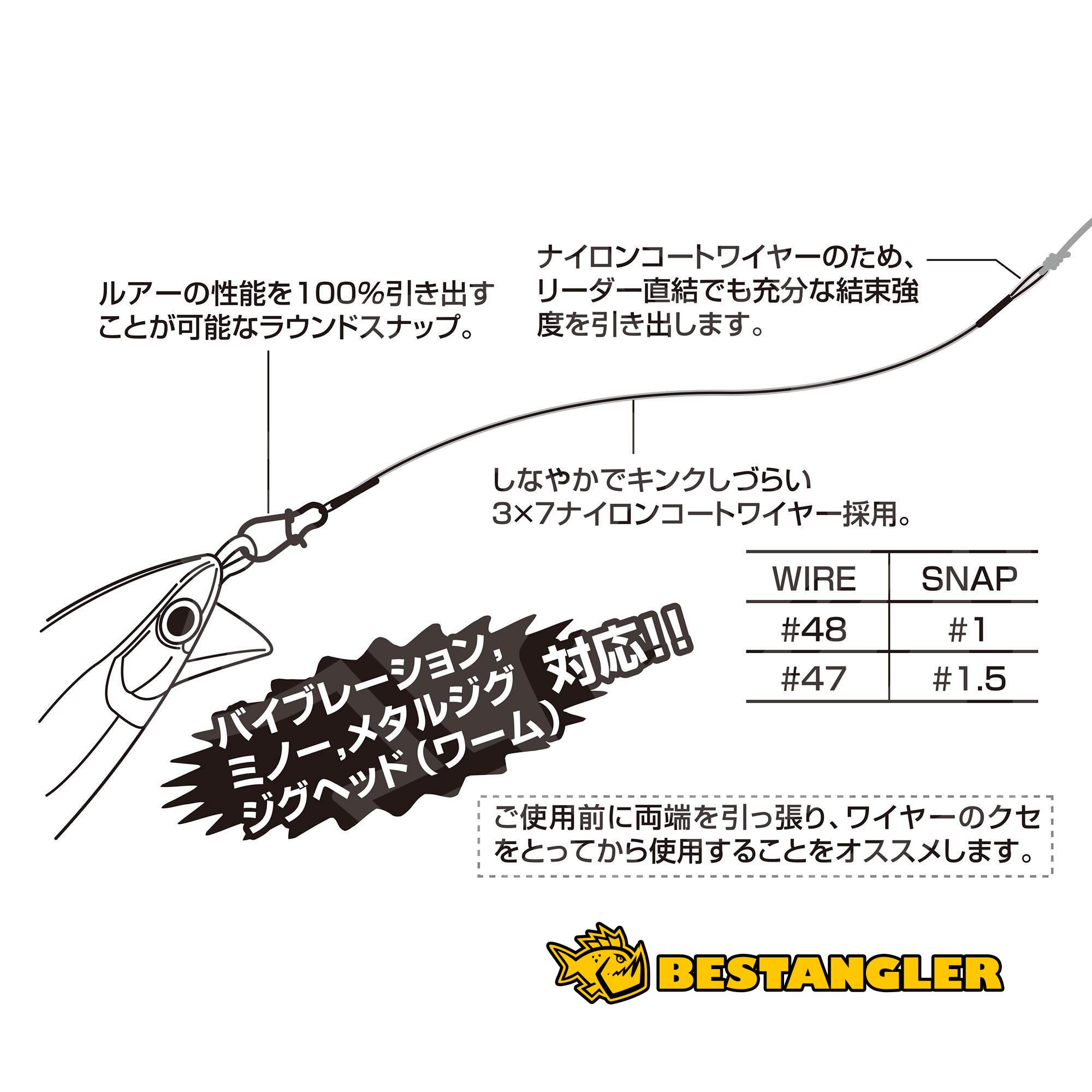 The DECOY WL‑01 Wire Leader provides reliable protection for your rig against bite-offs when fishing for sharp-toothed predators. Its core consists of a highly flexible wire braided in a 3×7 construction, which is coated with a protective nylon layer for maximum resistance against unwanted deformation and kinking. To avoid any interference with the natural action of the used lure, the leader is equipped with a round snap with a wide gap, which guarantees complete freedom of movement. Thanks to this flexible and technically well-thought-out design, the leader completely preserves the original action and is a great choice for combining with wobblers, spoons, vibrating lures as well as heavier jig heads in both freshwater and saltwater fishing.