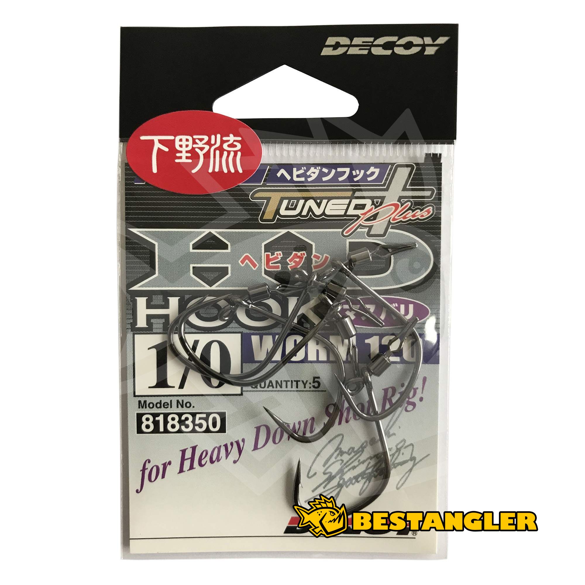 DECOY Worm 120 HD Hook Masubari is a specialized hook derived from the Worm 20 Big Bite Finesse model, designed for heavy downshot rigs in a masubari (straight shank) style. Its construction is optimized to maximize the natural movement of the lure and secure hooksets, whether rigged wacky-style or in a standard soft bait presentation.