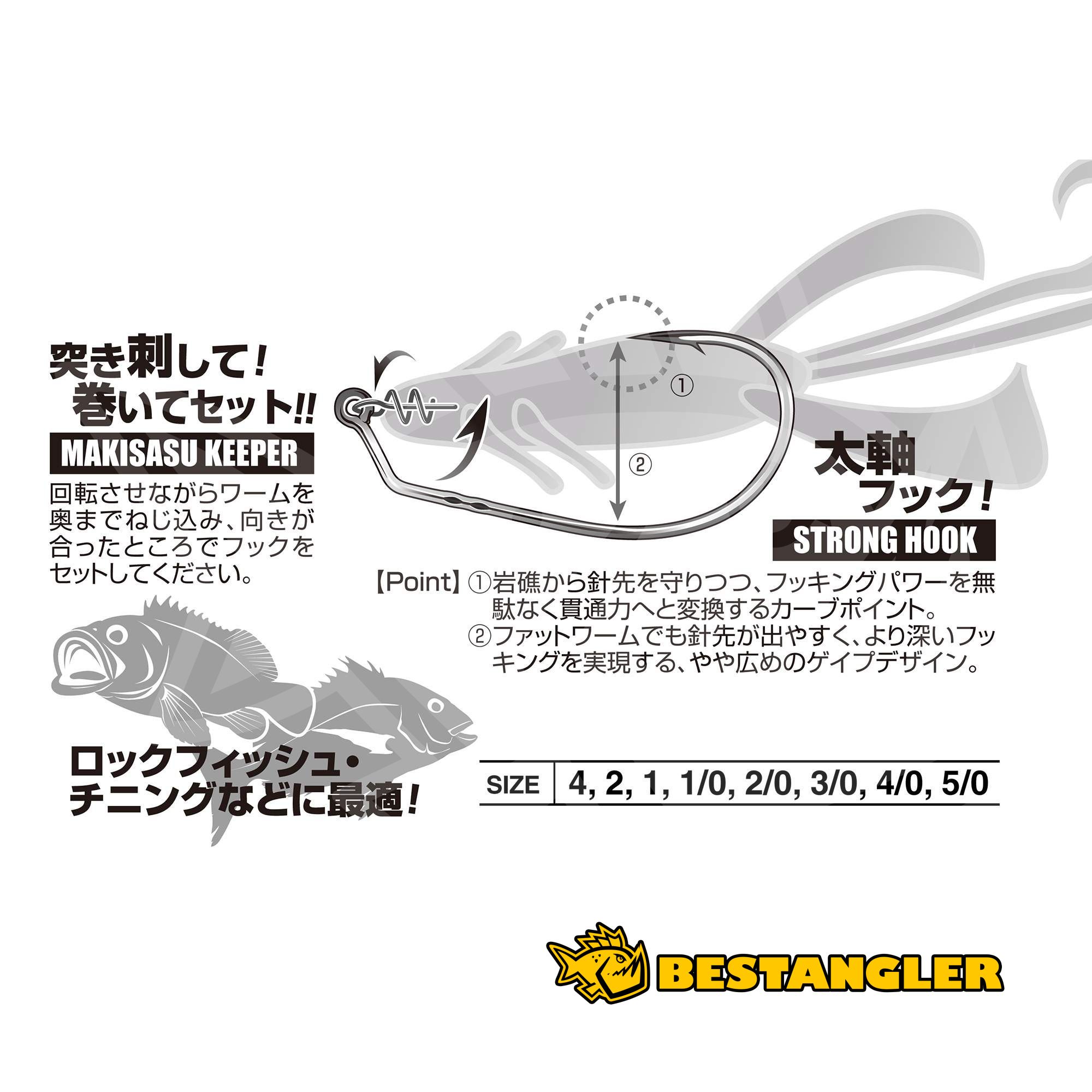 DECOY Worm 31 Makisasu Hook Hyper is a reinforced, heavy-duty upgrade of the popular Makisasu Hook, designed for maximum reliability in demanding environments. Just like the original, it features the integrated screw-in Makisasu Keeper, allowing you to “thread” the soft bait onto the hook so it stays firmly in place without sliding, even after multiple strikes.
