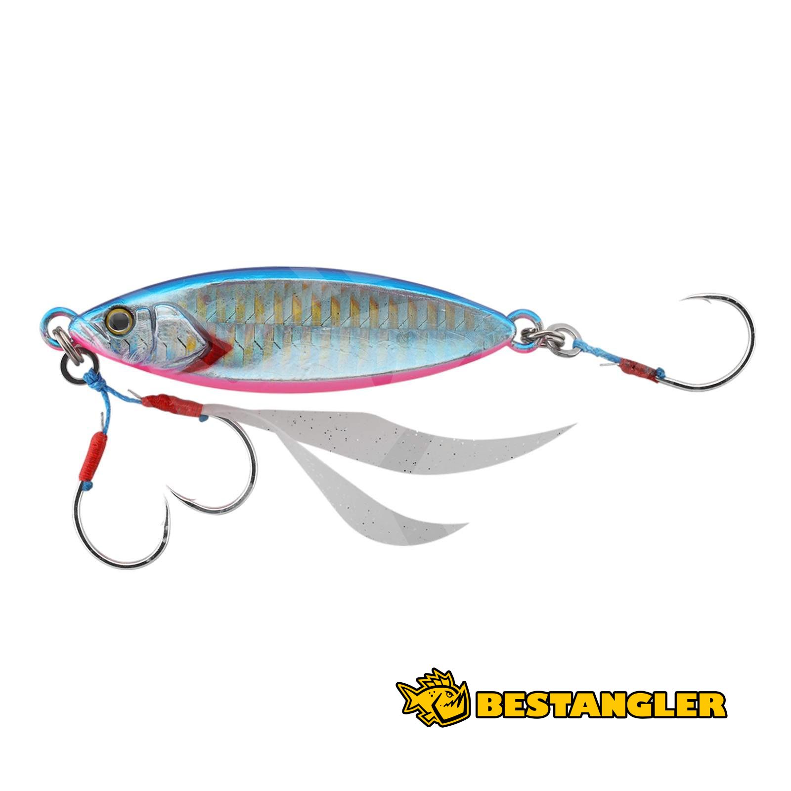 Jackall Flag Trap Leaf is a flat metal jig designed for slow, precise bottom fishing, where the key is to keep the lure in the strike zone for as long as possible. Thanks to its distinctly flattened body, it wobbles and falls more slowly on the drop, much like a leaf drifting through the water. This natural, subtle action is extremely effective for targeting flatfish, bottom-hugging species, snappers, and other coastal and saltwater fish that respond better to a calm presentation rather than aggressive movement.