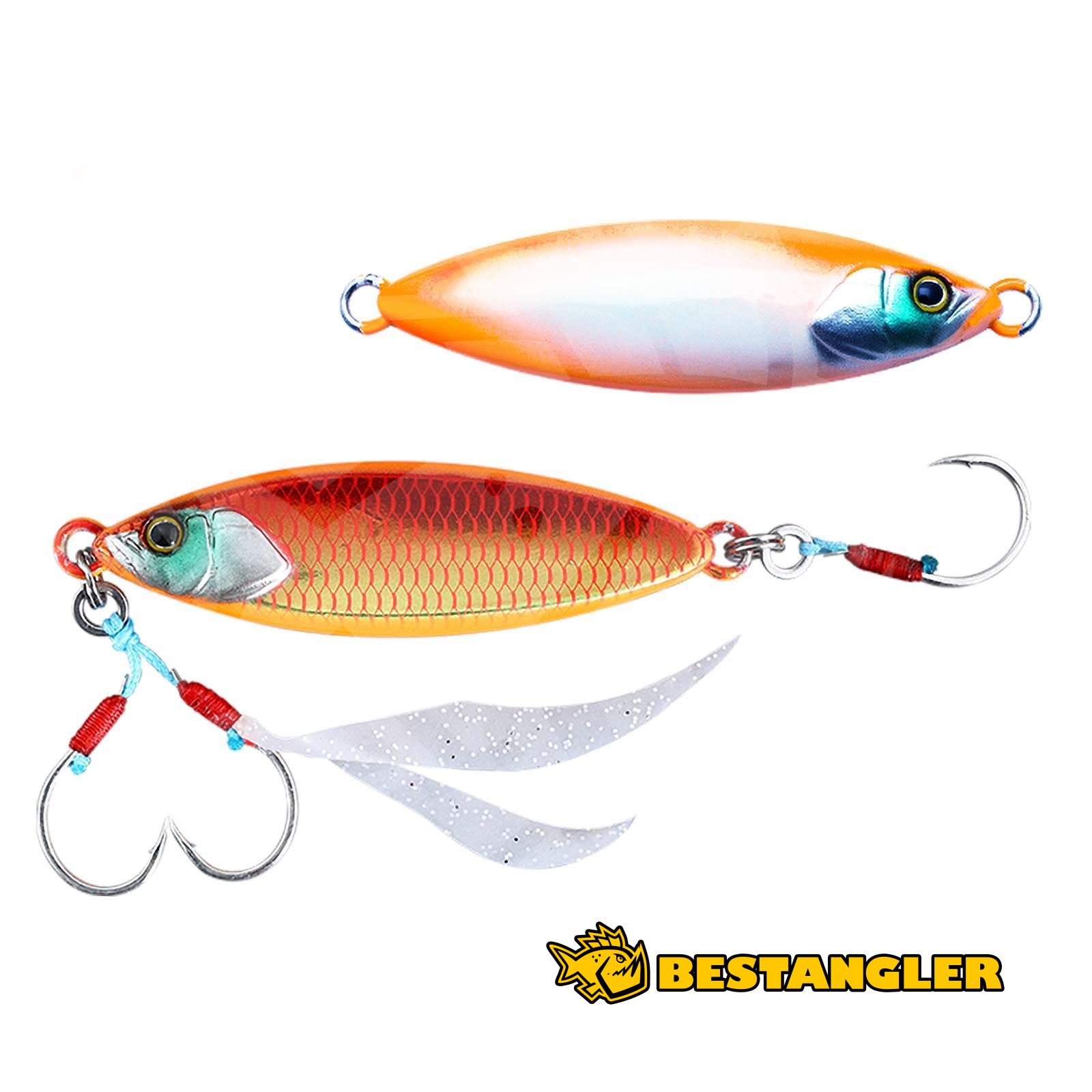 Jackall Flag Trap Leaf is a flat metal jig designed for slow, precise bottom fishing, where the key is to keep the lure in the strike zone for as long as possible. Thanks to its distinctly flattened body, it wobbles and falls more slowly on the drop, much like a leaf drifting through the water. This natural, subtle action is extremely effective for targeting flatfish, bottom-hugging species, snappers, and other coastal and saltwater fish that respond better to a calm presentation rather than aggressive movement.
