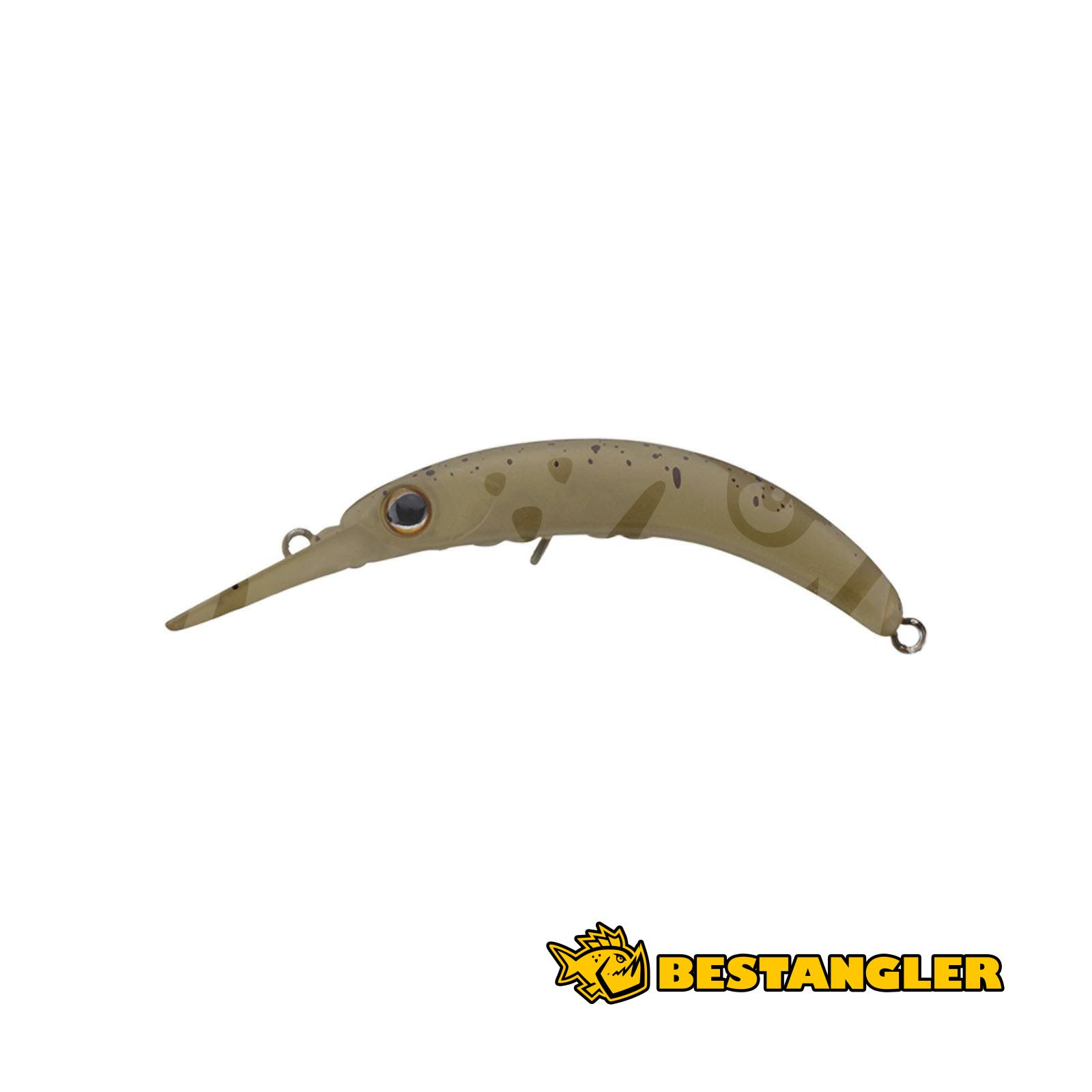 The compact crankbait Jackall Timon Chibi Pepino MR features a reduced slim profile specifically designed for fishing heavily pressured waters. The body construction utilizes a protruding weight chamber equipped with four steel balls. This arrangement radically lowers the lure's center of gravity and guarantees a highly stable action even during an extremely slow retrieve. Similarly curved lures tend to rotate during the cast, but the purposely shaped slim lip effectively minimizes aerodynamic drag and gives the wobbler very accurate flight characteristics.