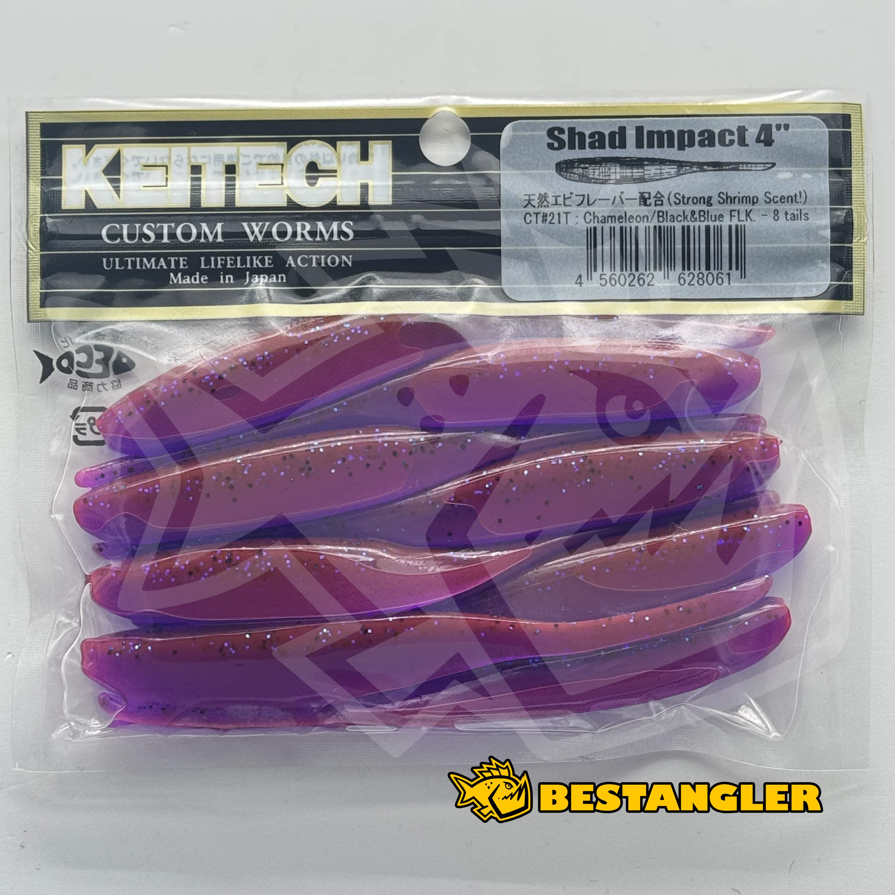 Keitech Shad Impact 4" Chameleon / Black & Blue FLK