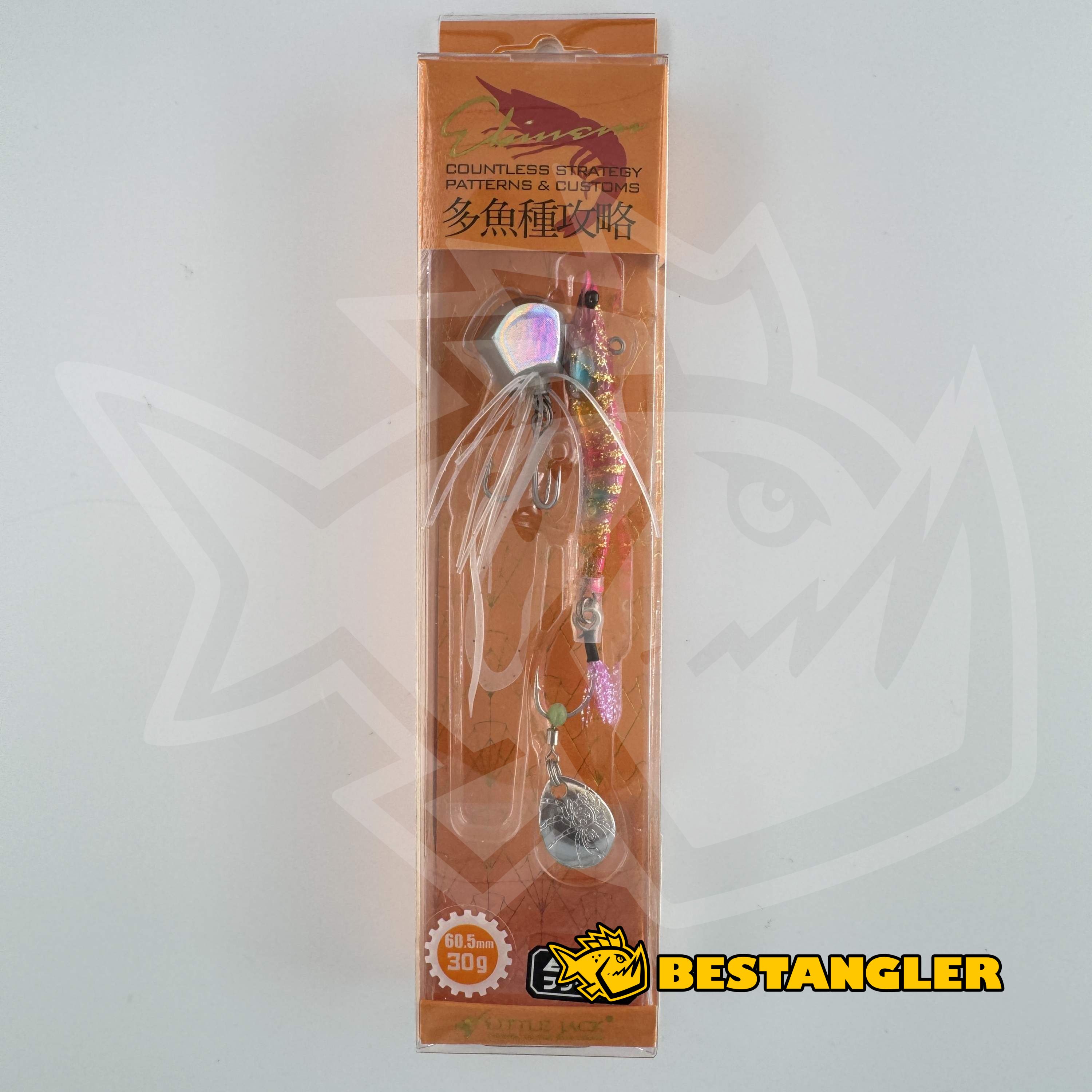 The Little Jack Ebinem sinking lure with a realistic shrimp profile combines the advantages of a blade jig and a vibration lure. The semi-transparent body conceals an internal reflective foil, while the exterior is complemented by a removable silicone skirt with a spinning Colorado blade. The specially shaped flat bottom weight eliminates snagging and ensures a stable fall angle. Thanks to the cleverly positioned front eyelet, the lure creates minimal resistance in the water current. Reliable BKK hooks ensure secure hook-ups.