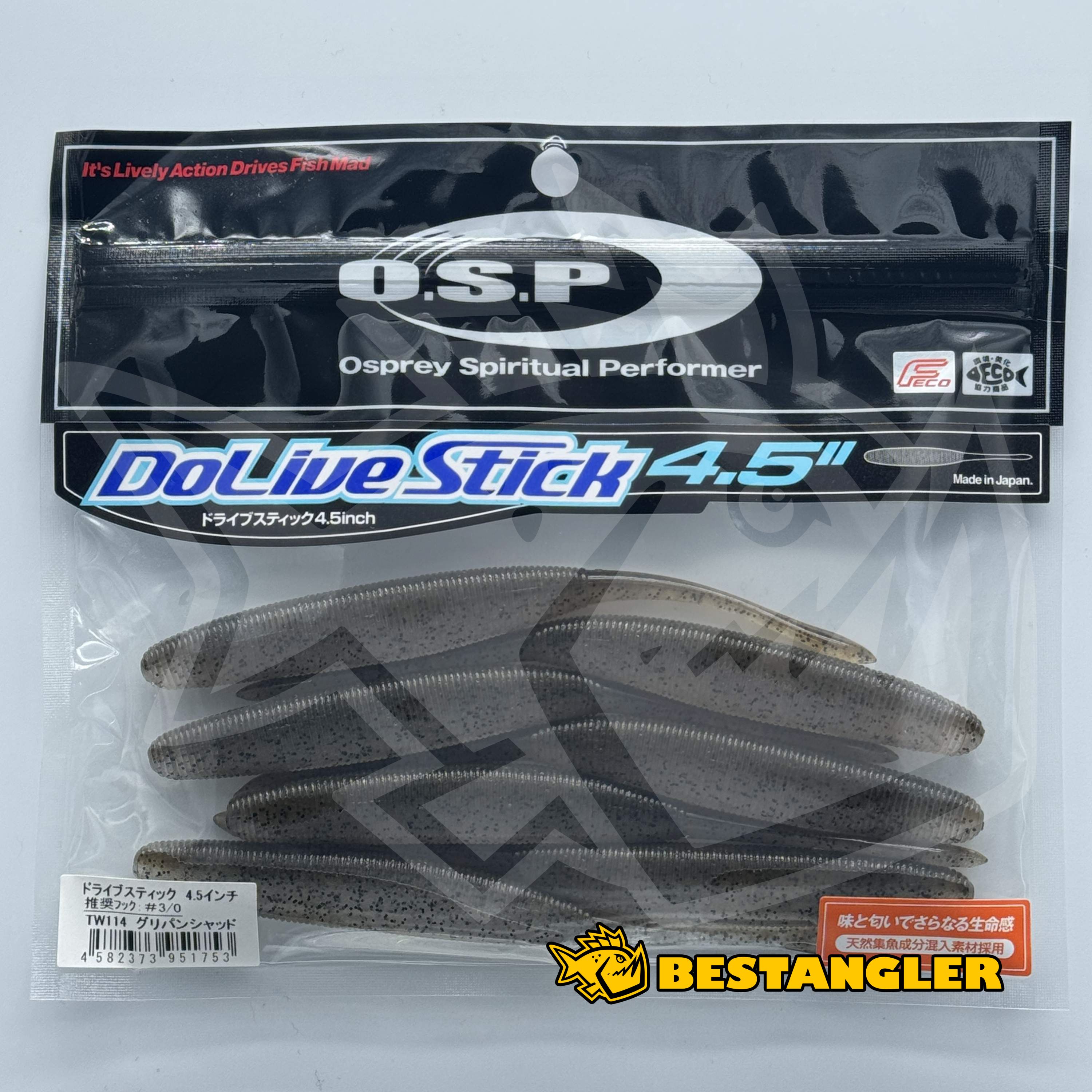 O.S.P DoLive Stick is a thoughtfully designed soft bait that combines the characteristics of a slim worm and a classic stick bait in a single body. The thinner rear section naturally undulates on the fall and during slow retrieves, while the thicker front section is designed to work effectively during twitching and changes of pace. Thanks to the different weight distribution between the two sections, the lure delivers a lively, natural action – when fished weightless, the body gently rolls and the rear section acts as an active “tail” that keeps the lure constantly alive.